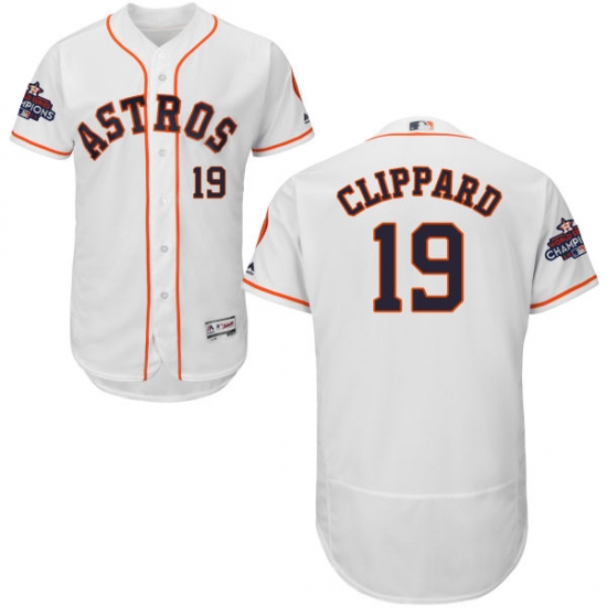 Home>MLB>Houston Astros>Tyler Clippard>Men's Majestic Houston Astros #19 Tyler Clippard Authentic White Home 2017 World Series Champions Flex Base MLB Jersey