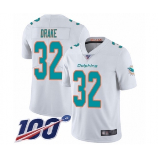 Men's Miami Dolphins #32 Kenyan Drake White Vapor Untouchable Limited Player 100th Season Football Jersey