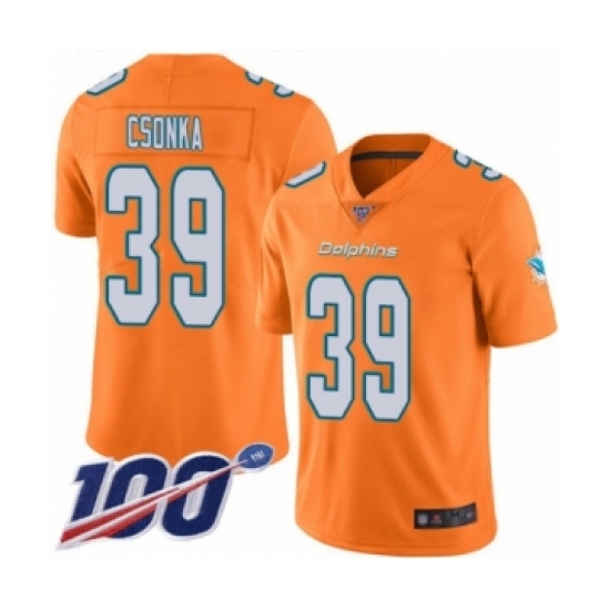 >Men's Miami Dolphins #39 Larry Csonka Limited Orange Rush Vapor Untouchable 100th Season Football Jersey
