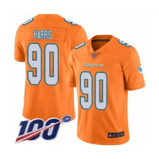 Men's Miami Dolphins #90 Charles Harris Limited Orange Rush Vapor Untouchable 100th Season Football Jersey