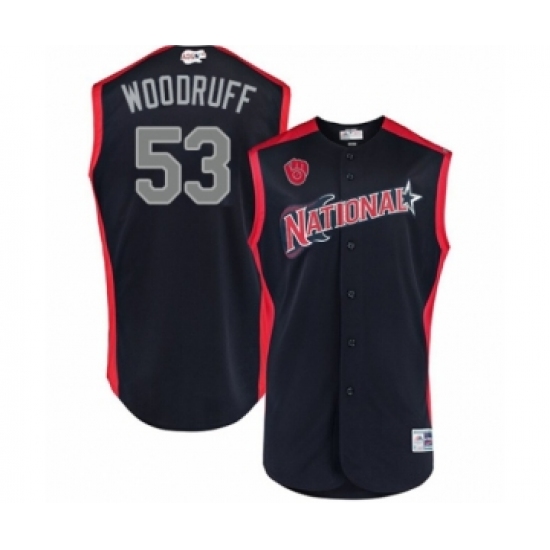 Men's Milwaukee Brewers #53 Brandon Woodruff Authentic Navy Blue National League 2019 Baseball All-Star Jersey