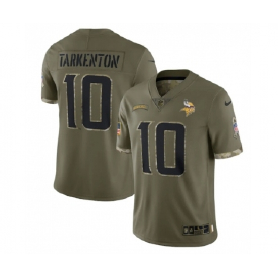Men's Minnesota Vikings #10 Fran Tarkenton 2022 Olive Salute To Service Limited Stitched Jersey