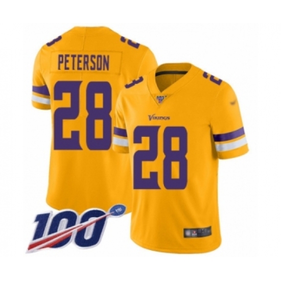 Men's Minnesota Vikings #28 Adrian Peterson Limited Gold Inverted Legend 100th Season Football Jersey