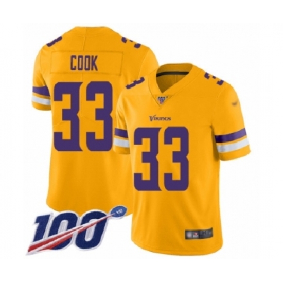 >Men's Minnesota Vikings #33 Dalvin Cook Limited Gold Inverted Legend 100th Season Football Jersey