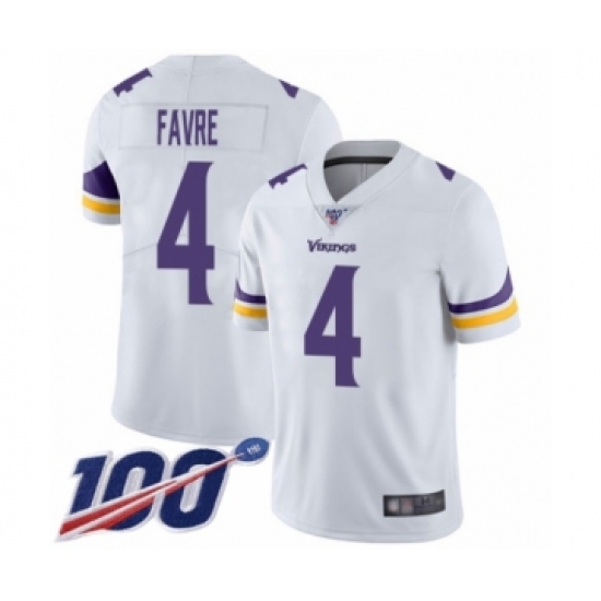 Men's Minnesota Vikings #4 Brett Favre White Vapor Untouchable Limited Player 100th Season Football Jersey