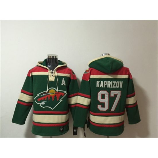 >Men's Minnesota Wild #97 Kirill Kaprizov Green Lace-Up Pullover Hoodie