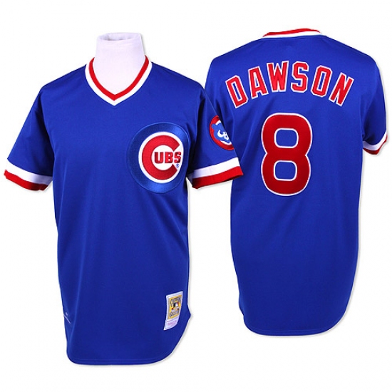 Men's Mitchell and Ness Chicago Cubs #8 Andre Dawson Replica Blue Throwback MLB Jersey