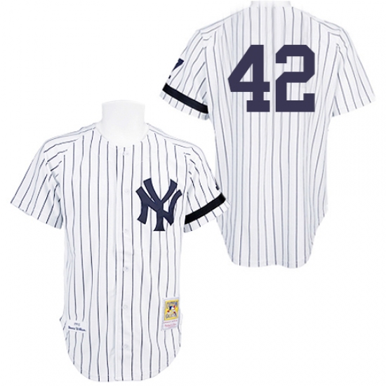Men's Mitchell and Ness Practice New York Yankees #42 Mariano Rivera Authentic White Throwback MLB Jersey