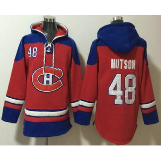 >Men's Montreal Canadiens #48 Lane Hutson Red Ageless Must Have Lace Up Pullover Hoodie