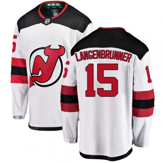Home>NHL>New Devils Jersey>Jamie Langenbrunner>Men's New Jersey Devils #15 Jamie Langenbrunner Fanatics Branded White Away Breakaway NHL Jersey