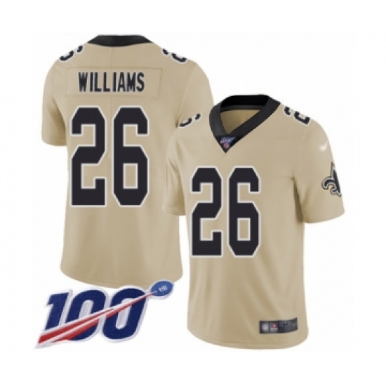 >Men's New Orleans Saints #26 P.J. Williams Limited Gold Inverted Legend 100th Season Football Jersey