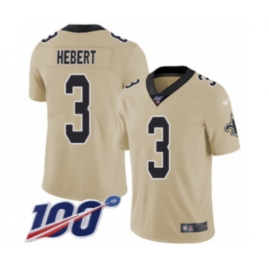 Men's New Orleans Saints #3 Bobby Hebert Limited Gold Inverted Legend 100th Season Football Jersey