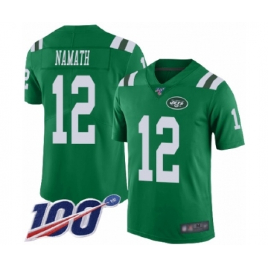 Men's New York Jets #12 Joe Namath Limited Green Rush Vapor Untouchable 100th Season Football Jersey