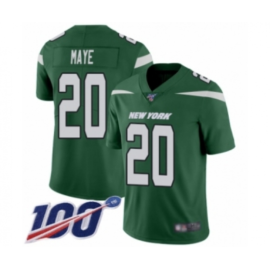 >Men's New York Jets #20 Marcus Maye Green Team Color Vapor Untouchable Limited Player 100th Season Football Jersey