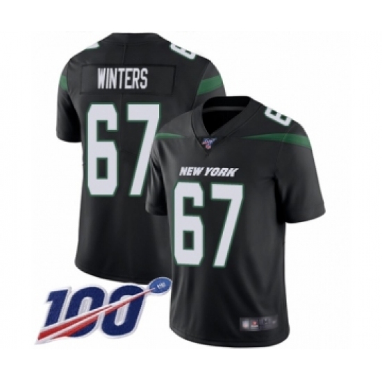 Men's New York Jets #67 Brian Winters Black Alternate Vapor Untouchable Limited Player 100th Season Football Jersey