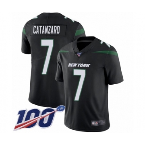 >Men's New York Jets #7 Chandler Catanzaro Black Alternate Vapor Untouchable Limited Player 100th Season Football Jersey