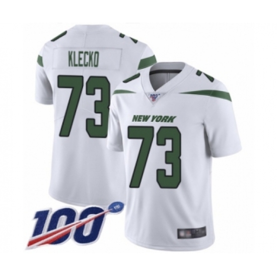 >Men's New York Jets #73 Joe Klecko White Vapor Untouchable Limited Player 100th Season Football Jersey