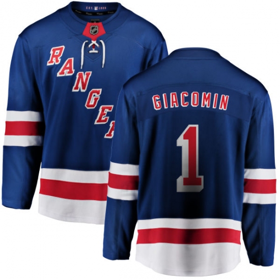 Home>NHL>New York Rangers>Eddie Giacomin>Men's New York Rangers #1 Eddie Giacomin Fanatics Branded Royal Blue Home Breakaway NHL Jersey
