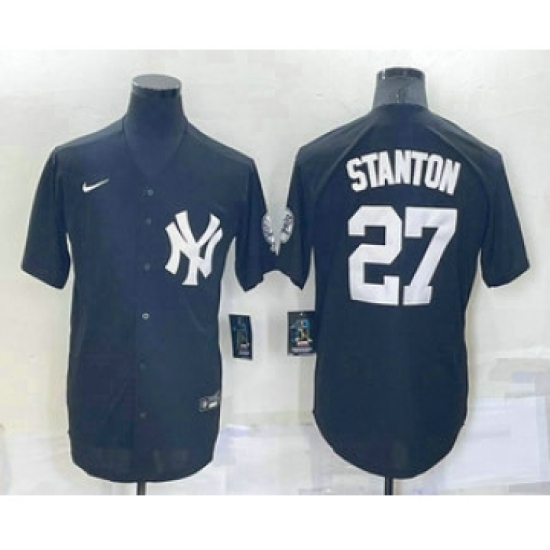Men's New York Yankees #27 Giancarlo Stanton Black Stitched Nike Cool Base Throwback Jersey