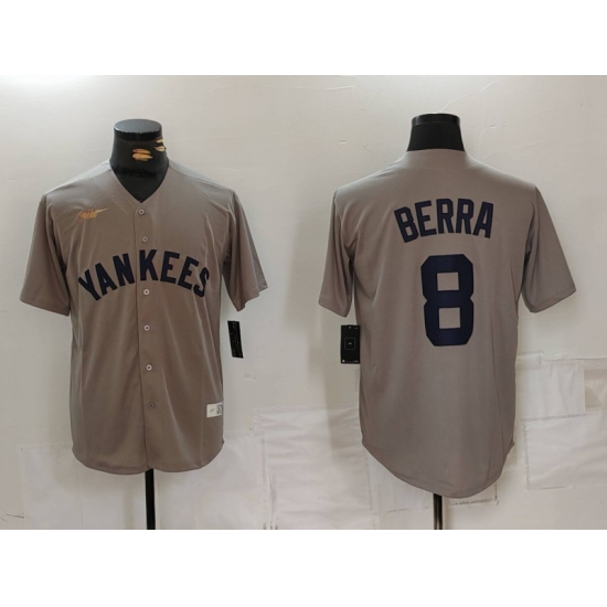 >Men's New York Yankees #8 Yogi Berra Grey Throwback Stitched Cool Base Nike Jersey
