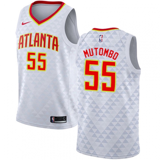Home>NBA>Atlanta Hawks>Dikembe Mutombo>Men's Nike Atlanta Hawks #55 Dikembe Mutombo Authentic White NBA Jersey - Association Edition