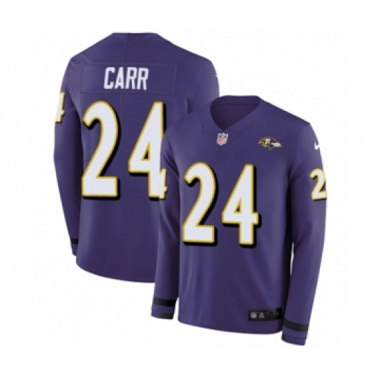 Men's Nike Baltimore Ravens #24 Brandon Carr Limited Purple Therma Long Sleeve NFL Jersey