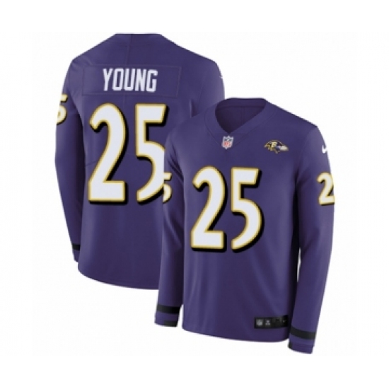 >Men's Nike Baltimore Ravens #25 Tavon Young Limited Purple Therma Long Sleeve NFL Jersey