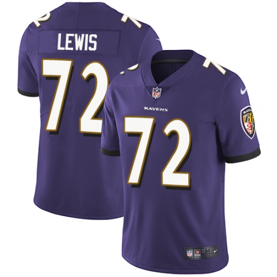 Home>NFL>Baltimore Ravens>Alex Lewis>Men's Nike Baltimore Ravens #72 Alex Lewis Purple Team Color Vapor Untouchable Limited Player NFL Jersey