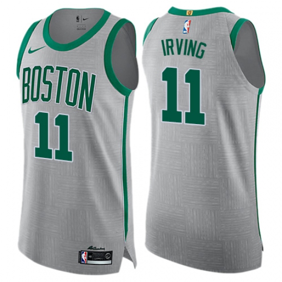 Home>NBA>Boston Celtics>Kyrie Irving>Men's Nike Boston Celtics #11 Kyrie Irving Authentic Gray NBA Jersey - City Edition