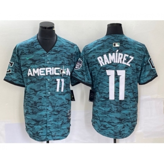Men's Nike Cleveland Indians #11 Jose Ramirez Number Teal 2023 All Star Cool Base Stitched Jersey