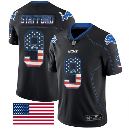 Men's Nike Detroit Lions #9 Matthew Stafford Limited Black Rush USA Flag NFL Jersey