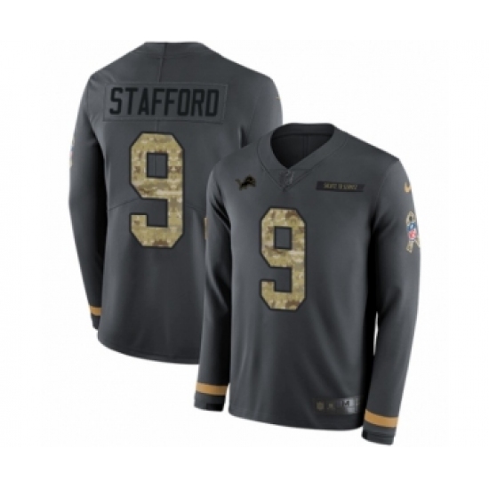 Men's Nike Detroit Lions #9 Matthew Stafford Limited Black Salute to Service Therma Long Sleeve NFL Jersey