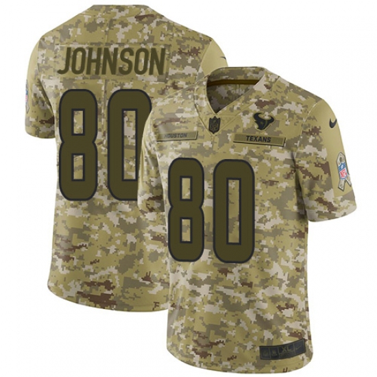 >Men's Nike Houston Texans #80 Andre Johnson Limited Camo 2018 Salute to Service NFL Jersey