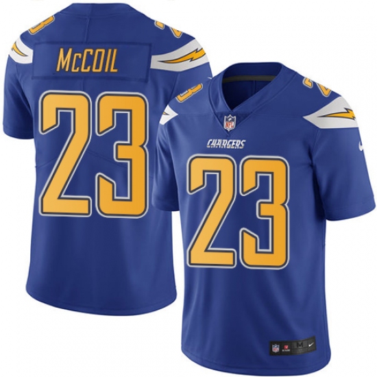 Home>NFL>Los Angeles Chargers>Dexter McCoil>Men's Nike Los Angeles Chargers #23 Dexter McCoil Limited Electric Blue Rush Vapor Untouchable NFL Jersey