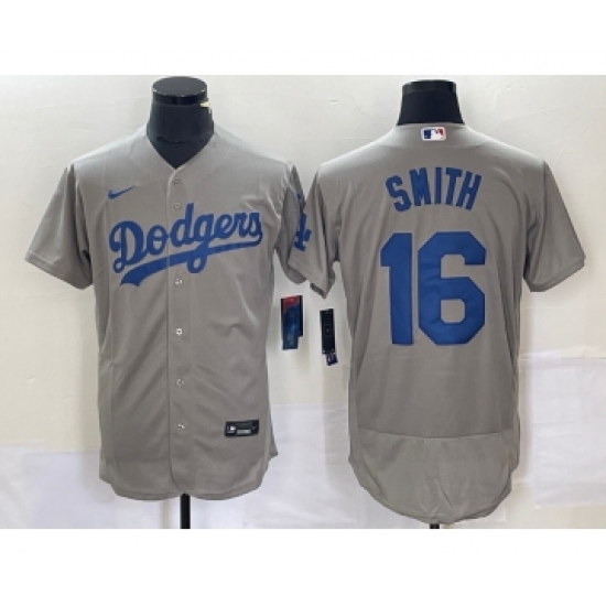 >Men's Nike Los Angeles Dodgers #16 Will Smith Grey Stitched Flex Base Jersey