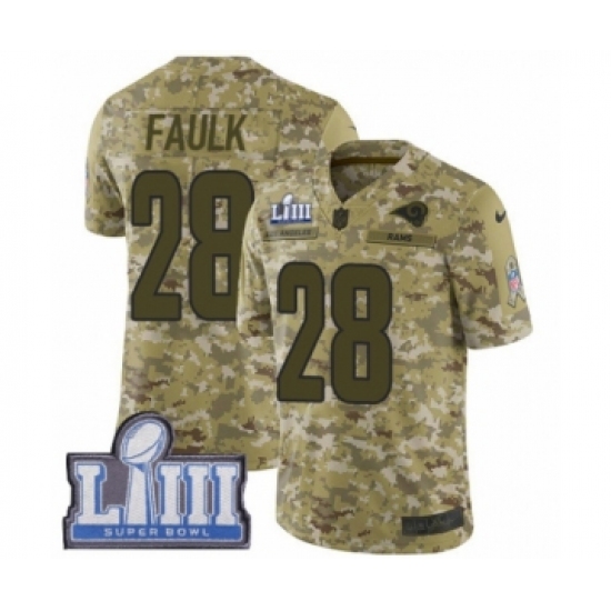 Men's Nike Los Angeles Rams #28 Marshall Faulk Limited Camo 2018 Salute to Service Super Bowl LIII Bound NFL Jersey
