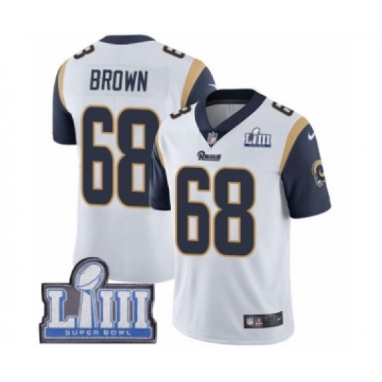 Men's Nike Los Angeles Rams #68 Jamon Brown White Vapor Untouchable Limited Player Super Bowl LIII Bound NFL Jersey