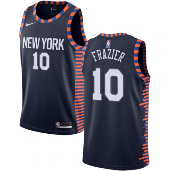 >Men's Nike New York Knicks #10 Walt Frazier Swingman Navy Blue NBA Jersey - 2018 19 City Edition