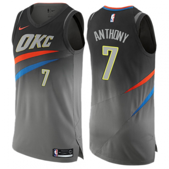 Home>NBA>Oklahoma City Thunder>Carmelo Anthony>Men's Nike Oklahoma City Thunder #7 Carmelo Anthony Authentic Gray NBA Jersey - City Edition