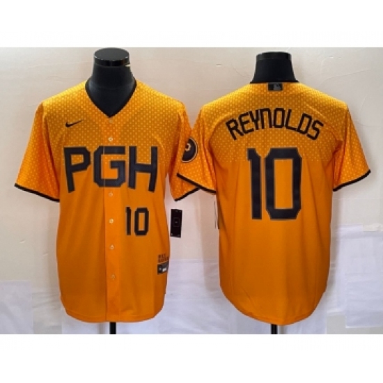 Men's Nike Pittsburgh Pirates #10 Bryan Reynolds Gold 2023 City Connect Stitched Jersey 1