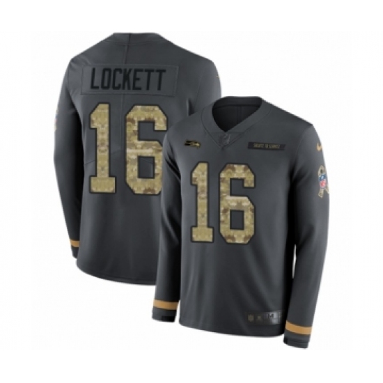 >Men's Nike Seattle Seahawks #16 Tyler Lockett Limited Black Salute to Service Therma Long Sleeve NFL Jersey