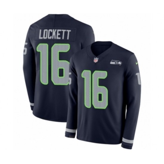>Men's Nike Seattle Seahawks #16 Tyler Lockett Limited Navy Blue Therma Long Sleeve NFL Jersey