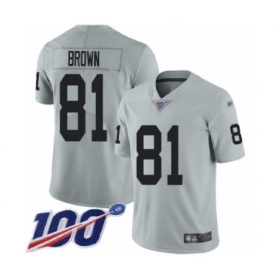 Men's Oakland Raiders #81 Tim Brown Limited Silver Inverted Legend 100th Season Football Jersey