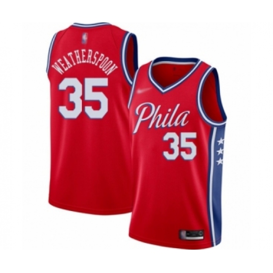 >Men's Philadelphia 76ers #35 Clarence Weatherspoon Authentic Red Finished Basketball Jersey - Statement Edition