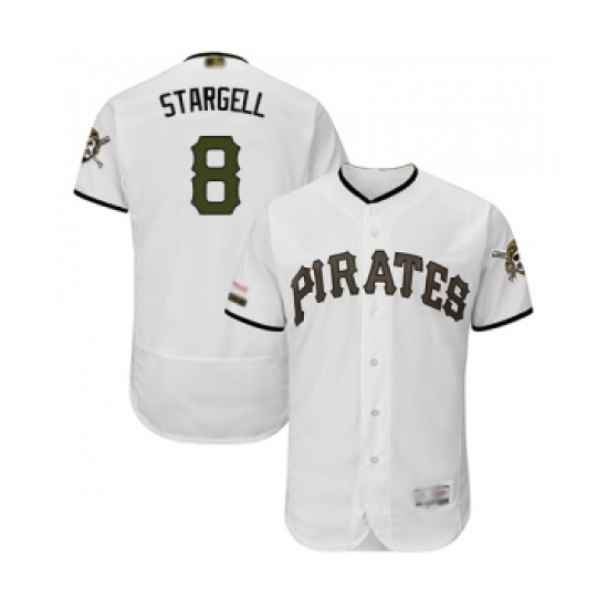>Men's Pittsburgh Pirates #8 Willie Stargell White Alternate Authentic Collection Flex Base Baseball Jersey