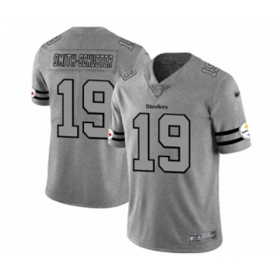 >Men's Pittsburgh Steelers #19 JuJu Smith-Schuster Limited Gray Team Logo Gridiron Football Jersey