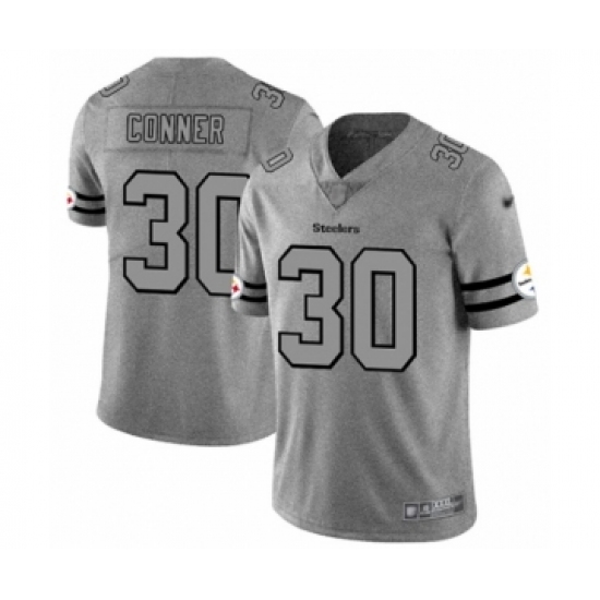 Men's Pittsburgh Steelers #30 James Conner Limited Gray Team Logo Gridiron Football Jersey
