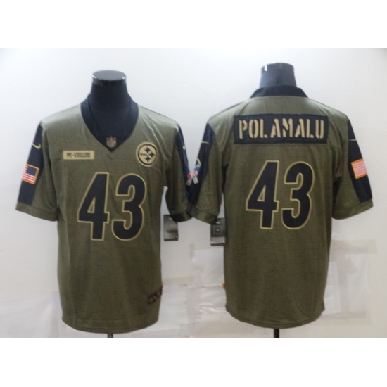 >Men's Pittsburgh Steelers #43 Troy Polamalu Nike Olive 2021 Salute To Service Limited Player Jersey