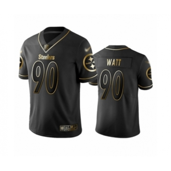 >Men's Pittsburgh Steelers #90 T. J. Watt Limited Black Golden Edition Football Jersey