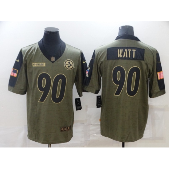 Men's Pittsburgh Steelers #90 T. J. Watt Nike Olive 2021 Salute To Service Limited Player Jersey